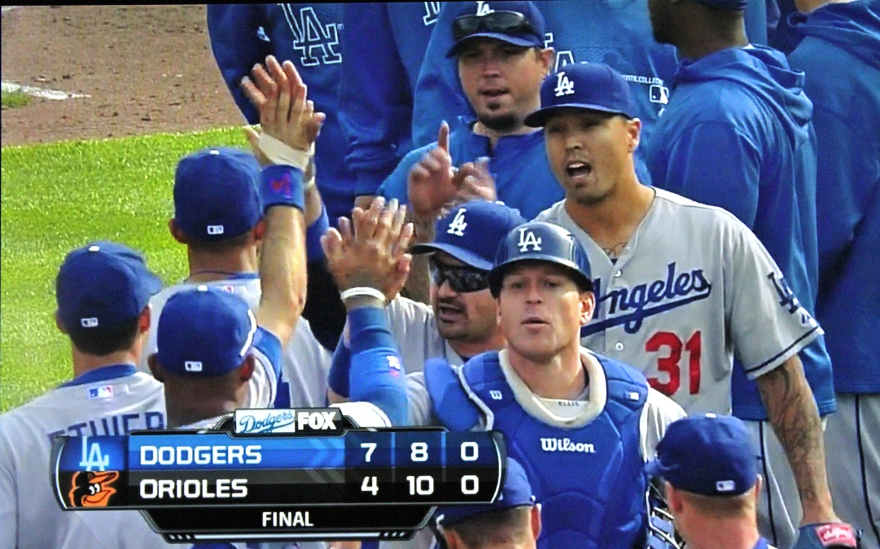 With 12 hits — five for extra bases — everybody, except Carl Crawford, was hitting tonight, and Crawford can have one day without a hit, since he’s been carrying the Dodgers offensively this whole season so far.