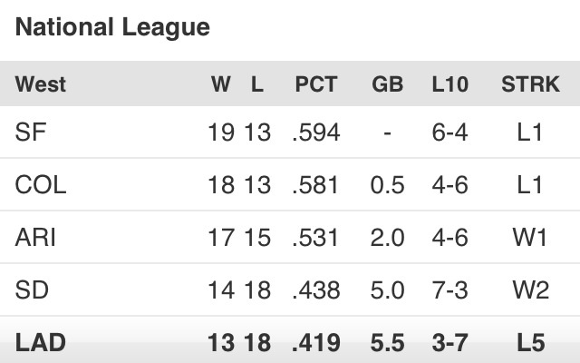 A Whole New Blue is right! I can’t remember the last time the Dodgers were in the basement all alone.