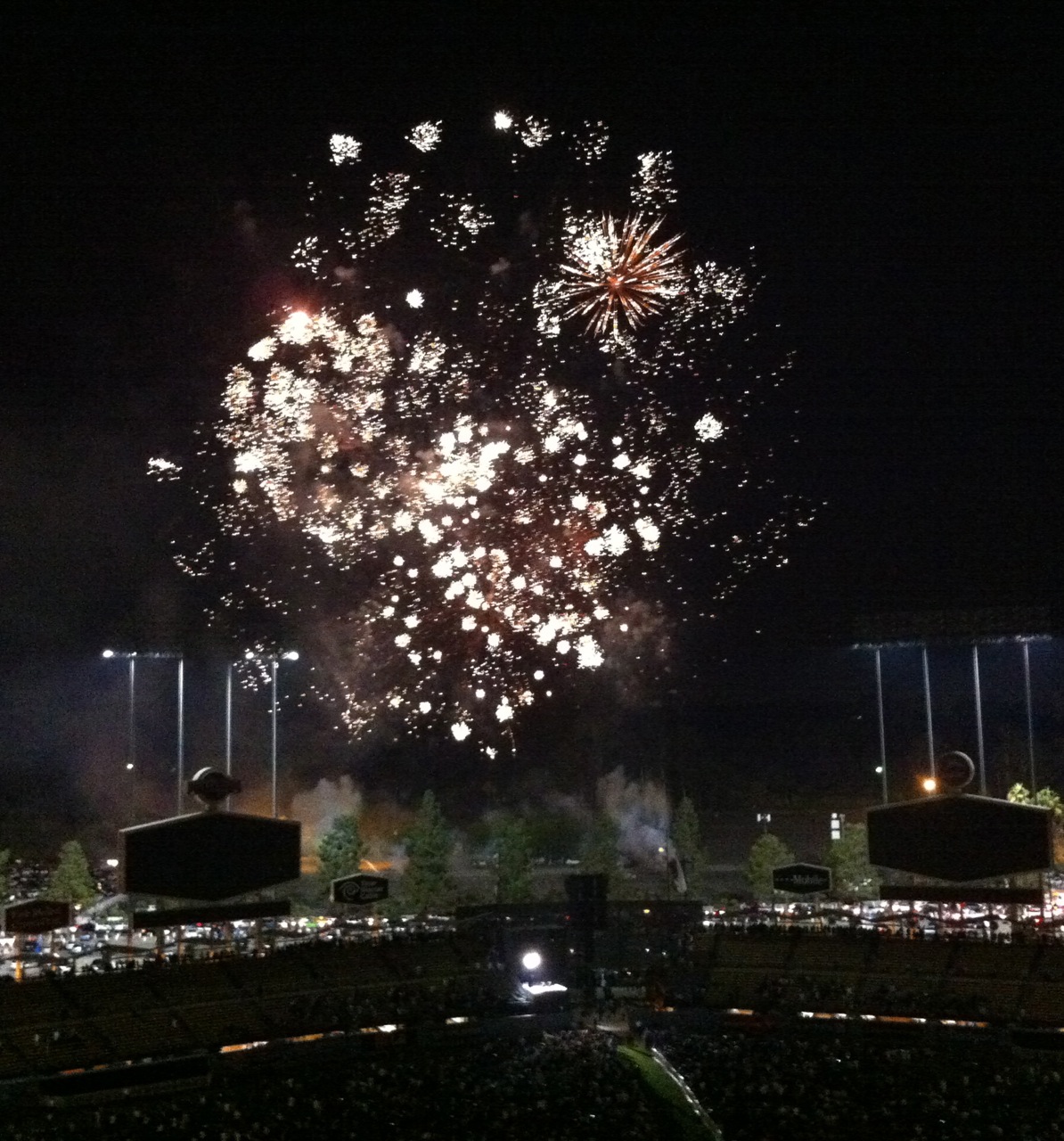 Fireworks as celebration or as a release of frustration? One swing made all the difference for me and 50,000 other Dodger fans Friday night.