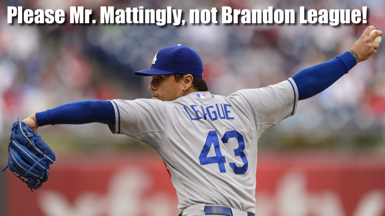 Mattingly brings in the universally dreaded League to close up the game. Now, I’m sure Brandon League is a perfectly nice guy, and I know the Dodgers owe him a lot of money, but they will never win a World Series if they rely on him to contribute. He should not be in the big leagues anymore. He is done. He should take his millions and go surfing at Waikiki. Anytime the announcer states, “Now pitching for the Dodgers, Number 43, Brandon League,” every true blue Dodger fan cringes, some even recoil in horror. And almost always, their fears are realized.