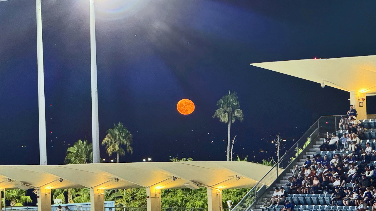 The 2nd night of a Supermoon Blue Moon coming up over a 6-3 Dodger win against the Mariners.