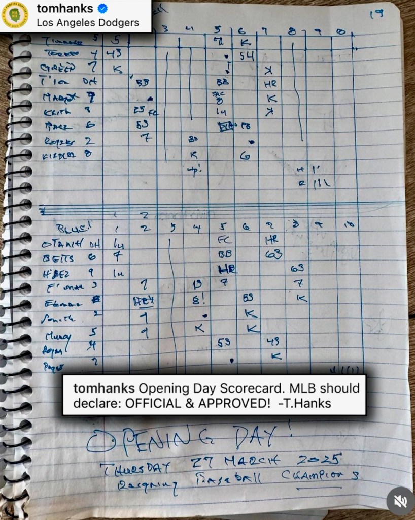 Every game so far has been spine-tingling! I’ve been to two games, both of which ended in walk-off homers! Plus I found out that Tom Hanks, on whom I’ve had a crush since “Bosom Buddies,” takes score in his Stadium Club suite! (I’ve suspected since 1980 that he and I were soul mates destined never to meet.)