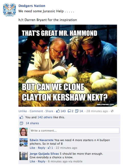 Oh, if they could all be like Clayton! This post on Facebook by Dodgers Nation (which I believe is a Dodgers-run fan page) says it all, but it also kind of disses the other pitchers in the rotation. I’d be pretty low if I were them.